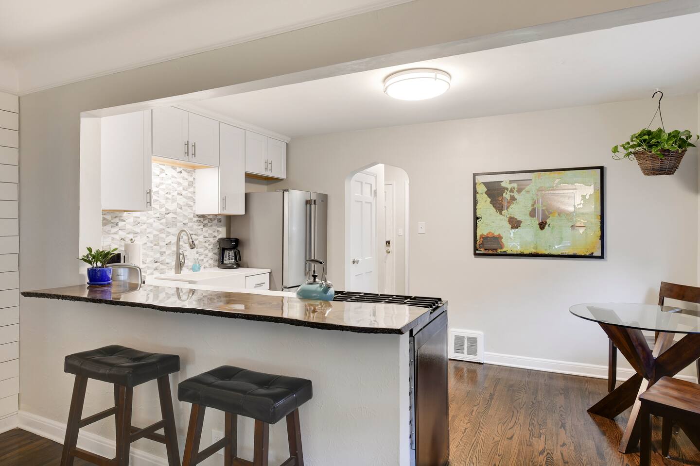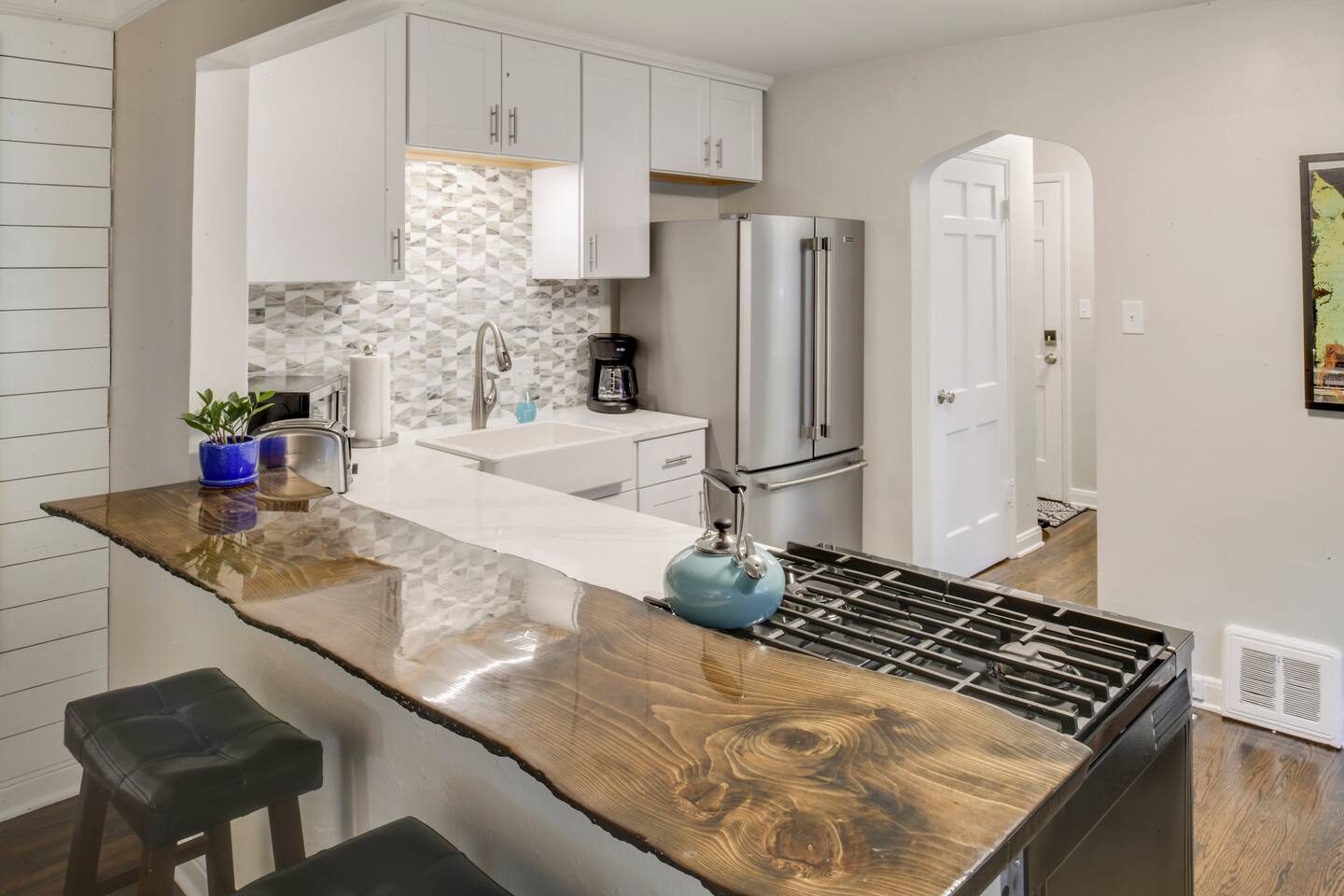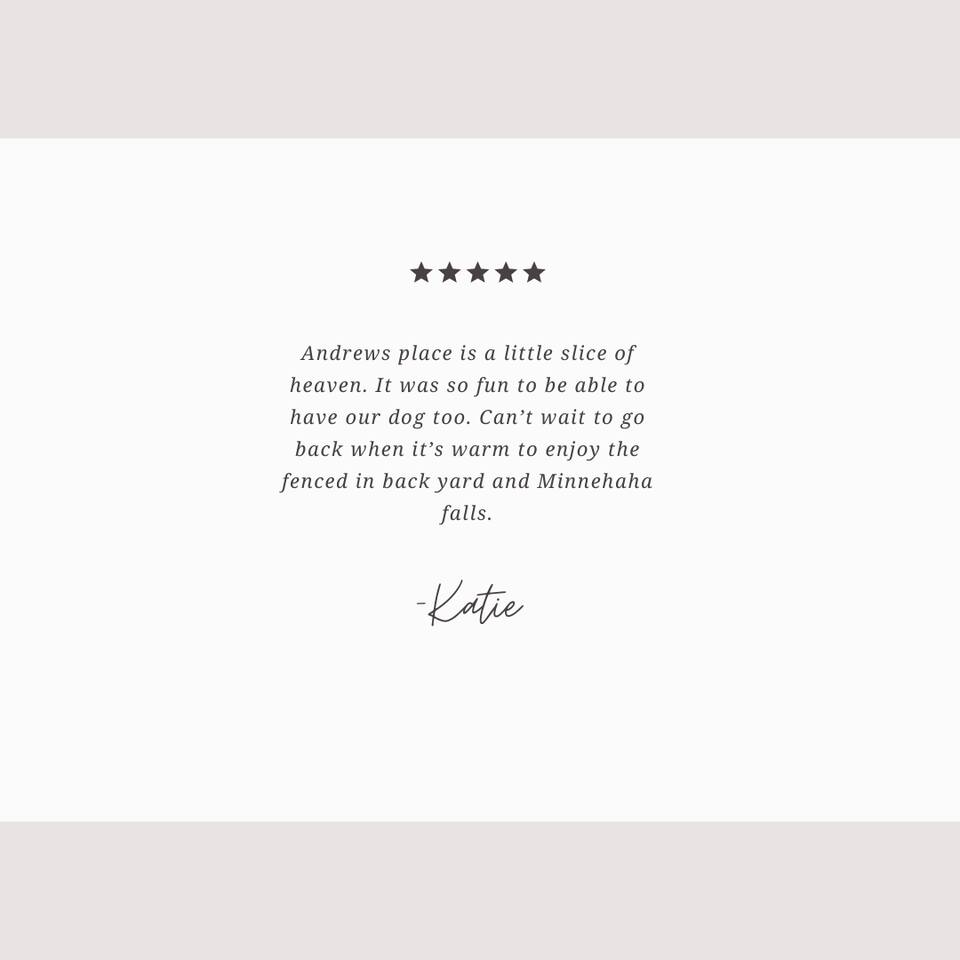 KEY FEATURES: ☀ Sleeps 3; 1 bedroom, 1 couch ☀ 1 full bathroom with combo shower/tub ☀ Fully stocked kitchen with complimentary coffee ☀ 75 Mbps WiFi and 55" Roku TV ☀ Board games and puzzles ☀ Washer and dryer ☀ Fenced backyard with BBQ grill ☀ Free parking (street parking and backyard driveway) Dog-friendly, but do not book if you have a dog that you think will have trouble in the unit, such as one that constantly barks. No dogs on beds, and the backyard is shared. $65 for one dog and an additional $65 for a second dog. Please select that you are bringing a pet if you are. There is a $100 fee per pet if you bring a pet and have not paid. Here are a few kind words from our past guests: "This was our third stay and we plan to return again in the future. It is conveniently located within walking (or cycling in warmer weather) distance to wonderful trails that are nicely maintained during the winter months. A grocery store and a couple of neighborhood restaurants are also within walking distance. Also, nice updates to the duplex!" - Paula and Joe "A beautiful little spot in a great location with all the amenities we could hope for. Check-in was a breeze, the space was clean and well-maintained, and we enjoyed our time there very much. Would love to stay again in the future." - Leah "Andrew's place is a little slice of heaven. It was so fun to be able to have our dog too. Can't wait to go back when it's warm to enjoy the fenced backyard and Minnehaha Falls." - Katie ☆☆ BEDROOM ☆☆ The bedroom features a high-quality king bed with luxury sheets and bedding. ☆☆ BATHROOM ☆☆ One bathroom with a shower and bathtub, stocked with all the essentials you need for the duration of your stay. ☆☆ KITCHEN ☆☆ Enjoy a cozy, fully stocked kitchen with a live-edge peninsula with stools, coffee maker, complimentary coffee, cookware, dinnerware, gas stove, oven, knives, dishwasher, and microwave. ☆☆ LIVING ROOM ☆☆ Use our 55" Roku TV to watch your favorite movies and TV shows (you will need to log in to your Netflix/Hulu/Disney+ account), or settle into the spacious living room with a puzzle, board game, or good book! ☆☆ LAUNDRY ☆☆ The washer and dryer are located in the basement if you'd like to do laundry during your stay. ☆☆ BACKYARD ☆☆ Exit through the back door to find a shared backyard with picnic tables and a grill to relax in the fresh air. ☆☆ PARKING ☆☆ Free street parking is available around the house. You are welcome to use the back alley parking spaces directly behind the house. ★☆ Book today and let us take care of you in the Twin Cities! ☆★