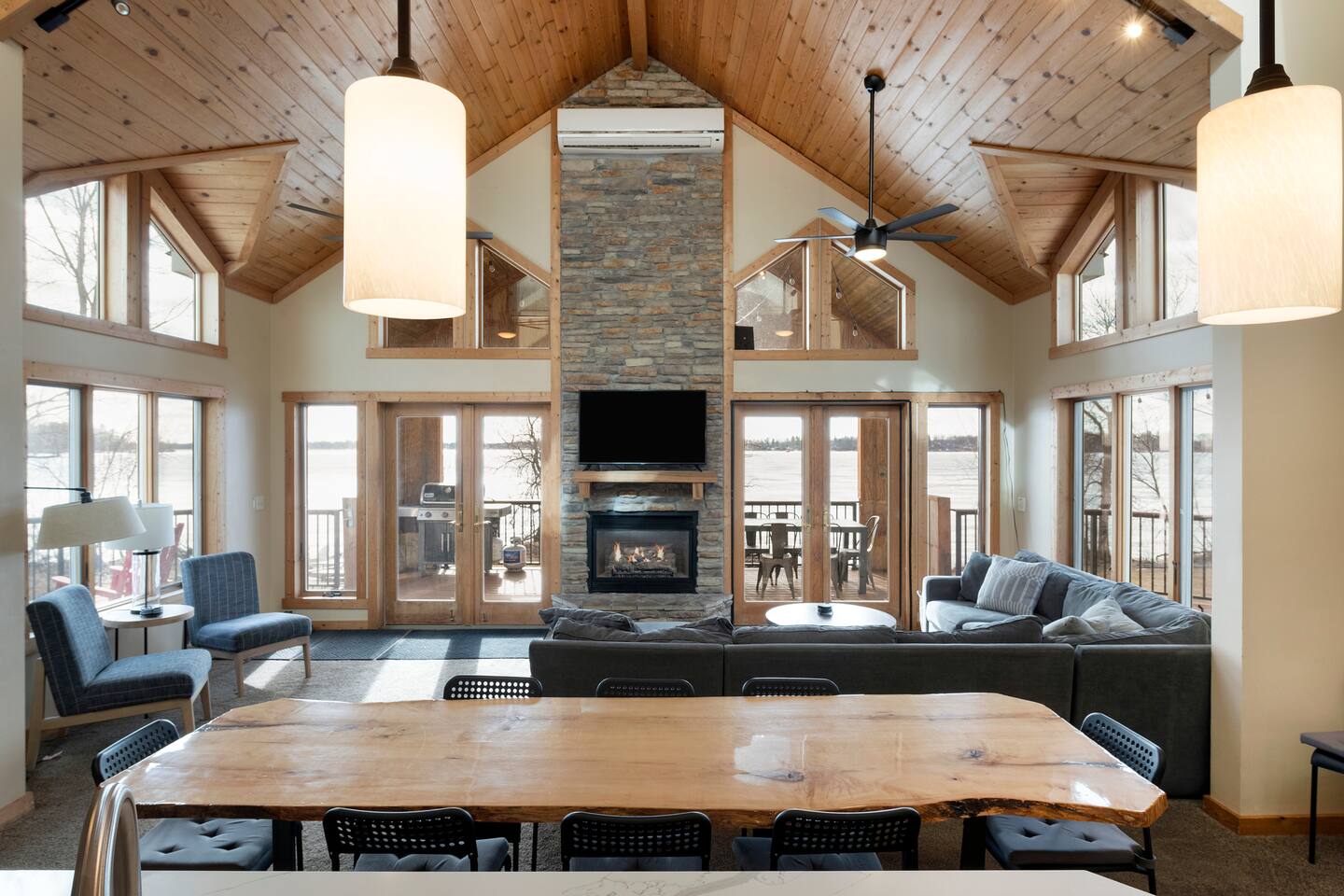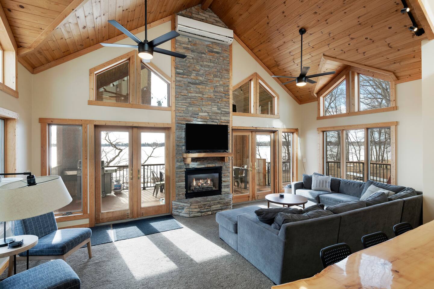 The Blue Heron is a perfect cabin getaway for families, friend groups, and couples! This stunning 4-bed, 3-bath home offers breathtaking views of the lake, and the huge yard leads you to a bonfire pit, dock, and private beach.