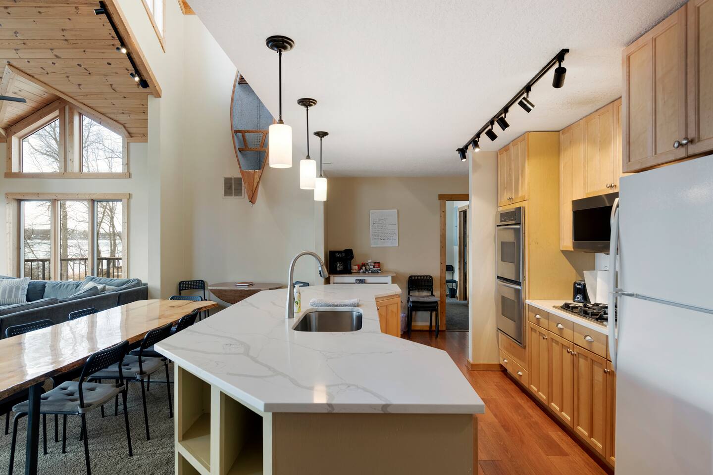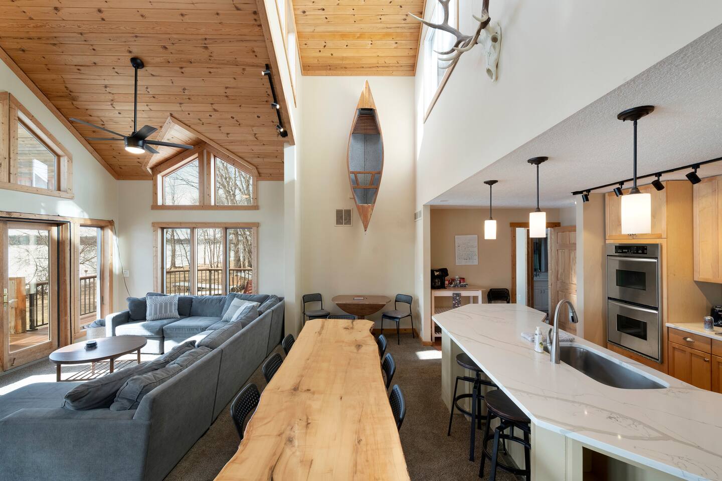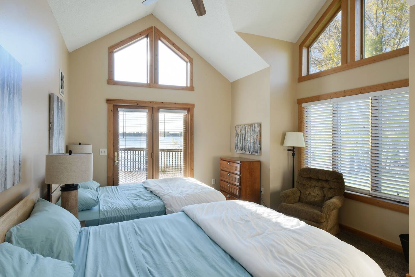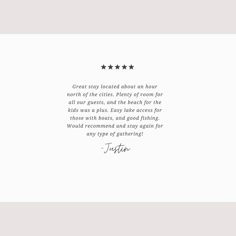 ☀ Sleeps 12; 4 bedrooms with 1 king bed, 2 queen beds, 2 twin-over-twin bunk beds, and 2 full-over-full bunk beds. ☀ 3 full bathrooms ☀ Dock (with cleats to tie up any boat) ☀ Breathtaking sunset lake views ☀ Firepit with wood supplied ☀ Private beach ☀ Propane three-burner Weber grill with propane provided ☀ Pontoon rental (Pine Toon Rental) ☀ Games (cornhole, board games, puzzles) ☀ Fully stocked kitchen ☀ In-unit washer and dryer ☀ Plenty of parking in the driveway ☀ 28-minute drive to Banning State Park ☀ 10-minute drive to Pine City Main Street for grocery stores and restaurants ☀ Walking distance to public boat launch ☀ 20-minute drive to Hinckley Casino Here are a few kind words from our past guests: "Great stay located about an hour north of the cities. Plenty of room for all our guests, and the beach for the kids was a plus. Easy lake access for those with boats and good fishing. Would recommend and stay again for any type of gathering!" - Justin "Fantastic location and amenities!!! Our large family stayed to celebrate a 70th birthday. The ample space fit us wonderfully. The added creature comforts of AC, Wi-Fi, two ensuite main floor bedrooms, and separate upstairs rooms provided some privacy as well. We will be back!" - Laura "Great location for a large family gathering. While we went in the winter, we got the full winter wonderland experience with tubing and playing on the frozen lake. They have a wonderful deck with a grill that we did utilize. We missed out on the opportunity to use the inviting firepit but opted for the cozy fireplace inside. The house comes with everything you need to make yourself at home, and stores and groceries are less than a 10-minute drive. Definitely worth braving the cold for these Floridians." - Marjorie ☆☆ BEDROOMS ☆☆ Four bedrooms: On the main floor, there are two bedrooms. One has a king bed, and the other has two queen beds. Upstairs, there are two more bedrooms, each with a twin-over-twin bunk bed and a full-over-full bunk bed. Luxury sheets and bedding are provided to ensure you have a peaceful sleep! ☆☆ BATHROOMS ☆☆ Three bathrooms with showers, stocked with all the essentials you need for the duration of your stay. ☆☆ KITCHEN ☆☆ Enjoy a fully stocked kitchen with a coffee maker, cookware, dinnerware, stove, oven, knives, microwave, and toaster. ☆☆ LIVING ROOM ☆☆ Use our 55” Smart TV to watch your favorite movies and TV shows (you’ll need to log in to your Netflix/Hulu/Disney+ account), or enjoy a puzzle or board game with the group! ☆☆ OUTDOOR AREA ☆☆ Step outside and enjoy the lake air! There’s a large table on the deck with a roof above, so you can enjoy the outdoors rain or shine. The bonfire pit has 12 Adirondack chairs, and wood is provided. There’s a private beach and dock. This area of the lake is on a bay that’s very shallow, so kids can play in the water. Right down the street is a public boat launch if you’re bringing a boat. If you love games, you’ll also be able to play cornhole with friends and family! ☆☆ LAUNDRY ☆☆ The washer and dryer are available for your use. ☆☆ PARKING ☆☆ There is plenty of space for cars around the house and in the driveway. ★☆ Book today and let us take care of you at the Blue Heron! ☆★