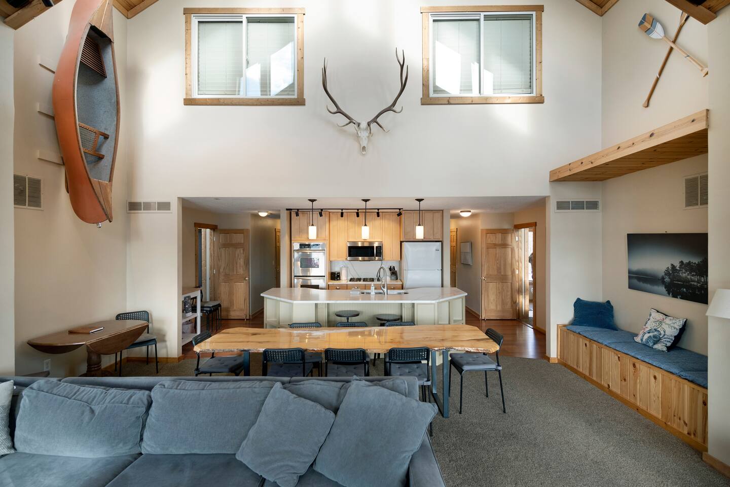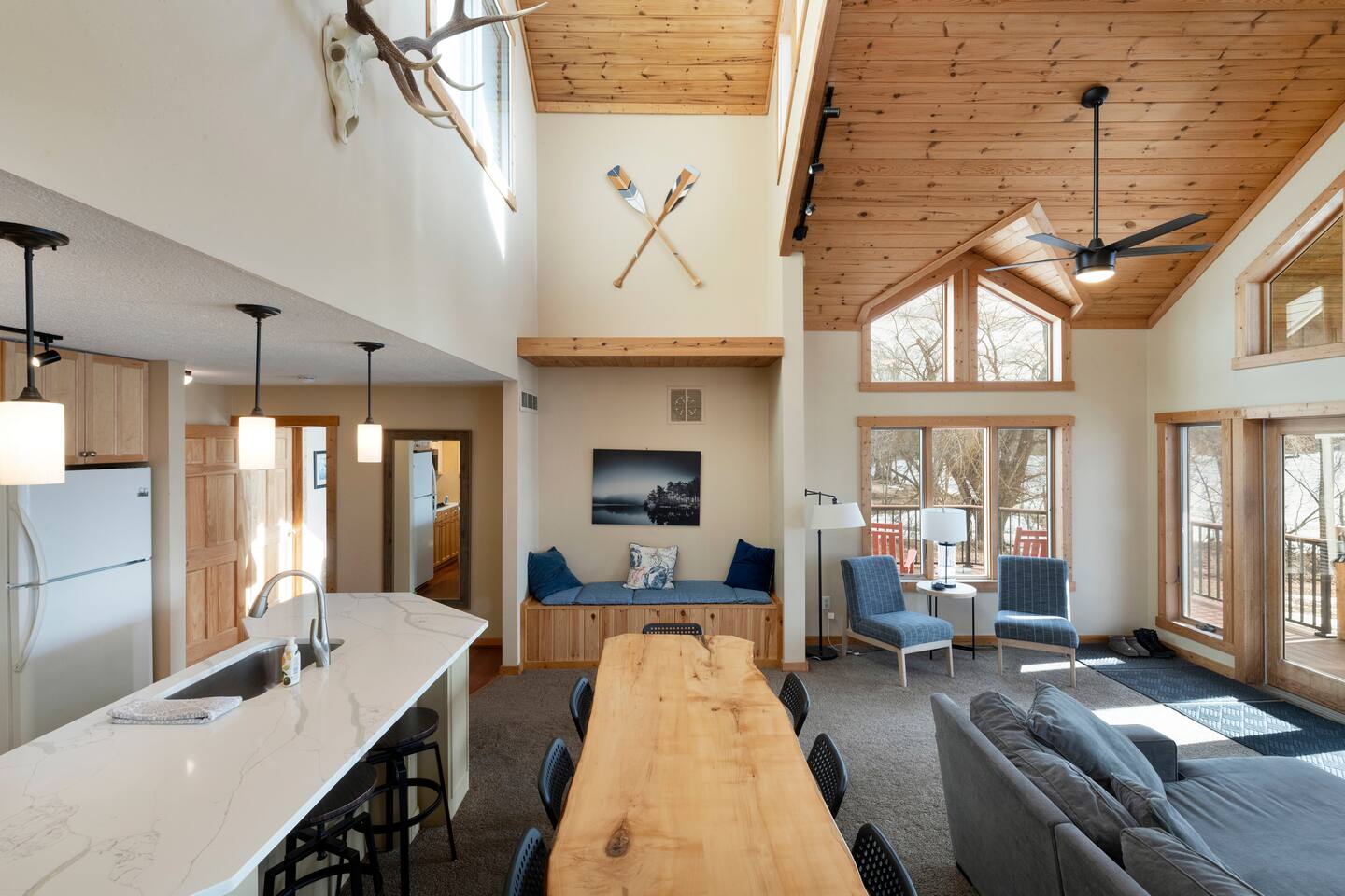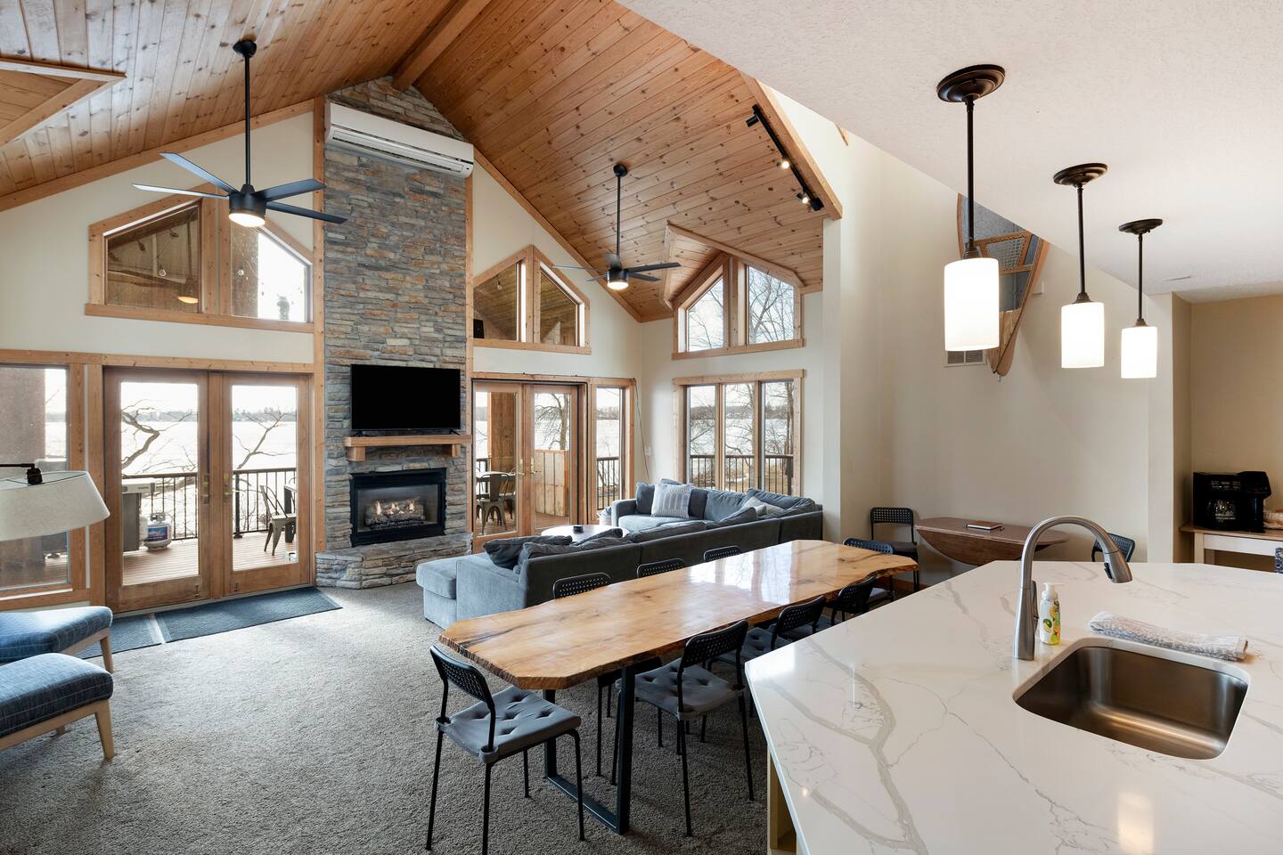 ☀ Sleeps 12; 4 bedrooms with 1 king bed, 2 queen beds, 2 twin-over-twin bunk beds, and 2 full-over-full bunk beds. ☀ 3 full bathrooms ☀ Dock (with cleats to tie up any boat) ☀ Breathtaking sunset lake views ☀ Firepit with wood supplied ☀ Private beach ☀ Propane three-burner Weber grill with propane provided ☀ Pontoon rental (Pine Toon Rental) ☀ Games (cornhole, board games, puzzles) ☀ Fully stocked kitchen ☀ In-unit washer and dryer ☀ Plenty of parking in the driveway ☀ 28-minute drive to Banning State Park ☀ 10-minute drive to Pine City Main Street for grocery stores and restaurants ☀ Walking distance to public boat launch ☀ 20-minute drive to Hinckley Casino Here are a few kind words from our past guests: "Great stay located about an hour north of the cities. Plenty of room for all our guests, and the beach for the kids was a plus. Easy lake access for those with boats and good fishing. Would recommend and stay again for any type of gathering!" - Justin "Fantastic location and amenities!!! Our large family stayed to celebrate a 70th birthday. The ample space fit us wonderfully. The added creature comforts of AC, Wi-Fi, two ensuite main floor bedrooms, and separate upstairs rooms provided some privacy as well. We will be back!" - Laura "Great location for a large family gathering. While we went in the winter, we got the full winter wonderland experience with tubing and playing on the frozen lake. They have a wonderful deck with a grill that we did utilize. We missed out on the opportunity to use the inviting firepit but opted for the cozy fireplace inside. The house comes with everything you need to make yourself at home, and stores and groceries are less than a 10-minute drive. Definitely worth braving the cold for these Floridians." - Marjorie ☆☆ BEDROOMS ☆☆ Four bedrooms: On the main floor, there are two bedrooms. One has a king bed, and the other has two queen beds. Upstairs, there are two more bedrooms, each with a twin-over-twin bunk bed and a full-over-full bunk bed. Luxury sheets and bedding are provided to ensure you have a peaceful sleep! ☆☆ BATHROOMS ☆☆ Three bathrooms with showers, stocked with all the essentials you need for the duration of your stay. ☆☆ KITCHEN ☆☆ Enjoy a fully stocked kitchen with a coffee maker, cookware, dinnerware, stove, oven, knives, microwave, and toaster. ☆☆ LIVING ROOM ☆☆ Use our 55” Smart TV to watch your favorite movies and TV shows (you’ll need to log in to your Netflix/Hulu/Disney+ account), or enjoy a puzzle or board game with the group! ☆☆ OUTDOOR AREA ☆☆ Step outside and enjoy the lake air! There’s a large table on the deck with a roof above, so you can enjoy the outdoors rain or shine. The bonfire pit has 12 Adirondack chairs, and wood is provided. There’s a private beach and dock. This area of the lake is on a bay that’s very shallow, so kids can play in the water. Right down the street is a public boat launch if you’re bringing a boat. If you love games, you’ll also be able to play cornhole with friends and family! ☆☆ LAUNDRY ☆☆ The washer and dryer are available for your use. ☆☆ PARKING ☆☆ There is plenty of space for cars around the house and in the driveway. ★☆ Book today and let us take care of you at the Blue Heron! ☆★